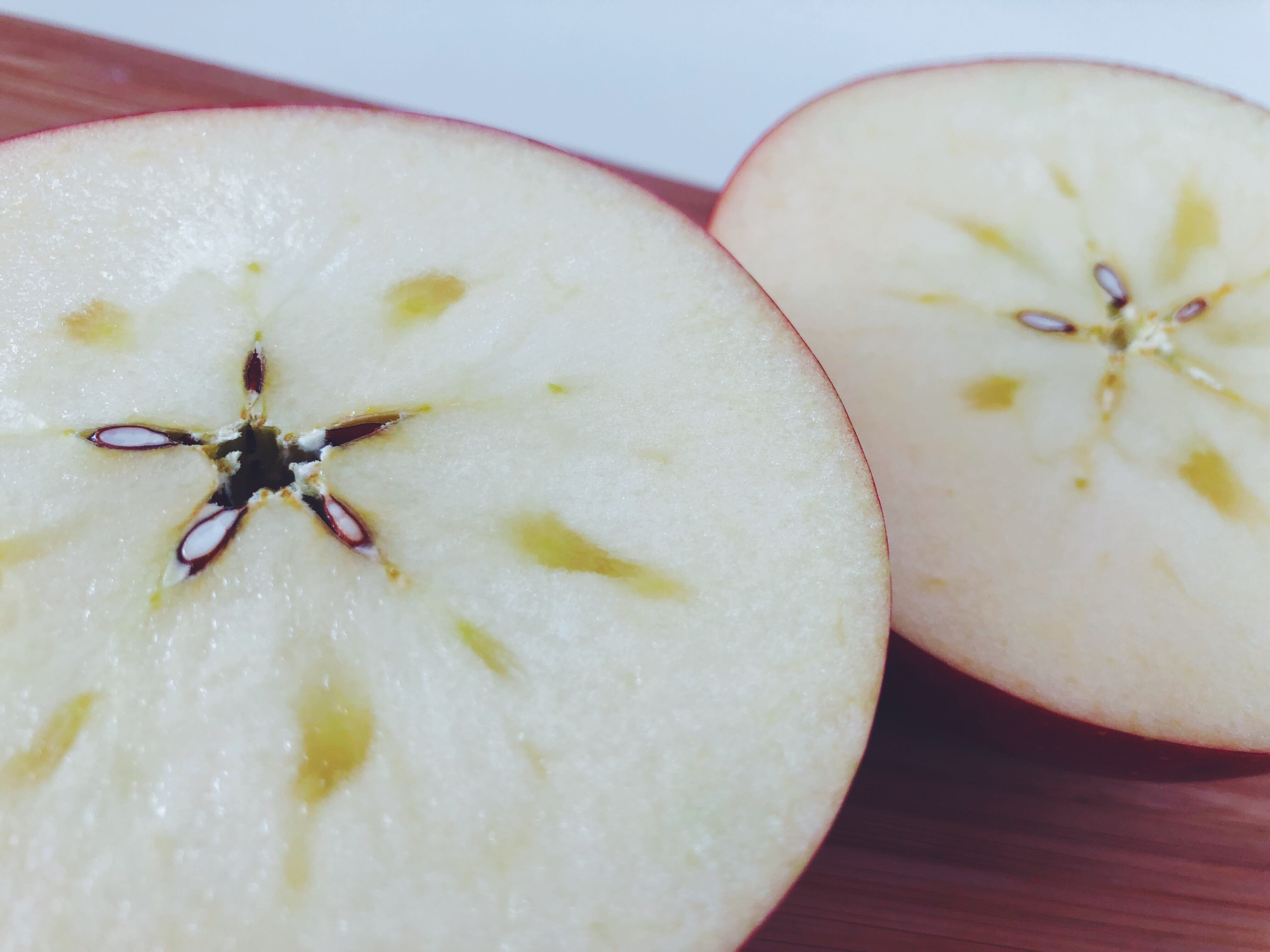 時間が経過いたしますと、表面にワックスがかかったようになりますが、水分を保つために、りんご自らが内面から出す、いわば天然のワックスですので安心してお召し上がりください。
